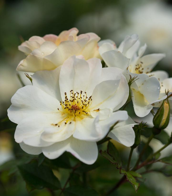 Description- Bred in Canada, and named after the famous Canadian jazz pianist and composer Oscar Peterson, this new rose is not only tough, it’s beautiful. Blooming from early summer through fall, the semi-double flowers start out a shade of soft yellow cream that soon turn to bright white with a contrasting center of golden yellow stamens. The flowers are arranged in sprays and the spent petals always fall cleanly from the plant. The foliage is dark rich green with excellent disease resistance. It has an upright habit, being slightly taller than wide. One of the hardiest roses in our Easy Elegance® collection, it lives happily in cold zone 3. And, we’ve tested it in zone 7 Georgia where it has held up beautifully to southern heat. Own root.