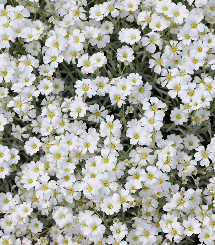 This groundcover has a more restrained, compact habit than other Cerastium but still provides great form and striking gray foliage. It is covered with small white bloom in June making it one of the most attractive plants for massing you can find for sunny, dry soil spots.