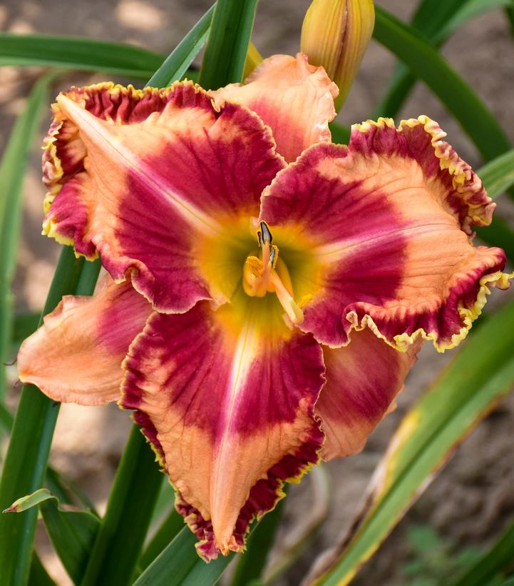 A stunning new color pattern for Proven Winners! The enormous 7” flower is apricot orange with an incredibly wide, orange-red eye. Along the ruffled edge is a matching orange-red picotee edge with a razor-thin golden yellow margin. ‘Lake of Fire’ will set your garden ablaze in midsummer.
