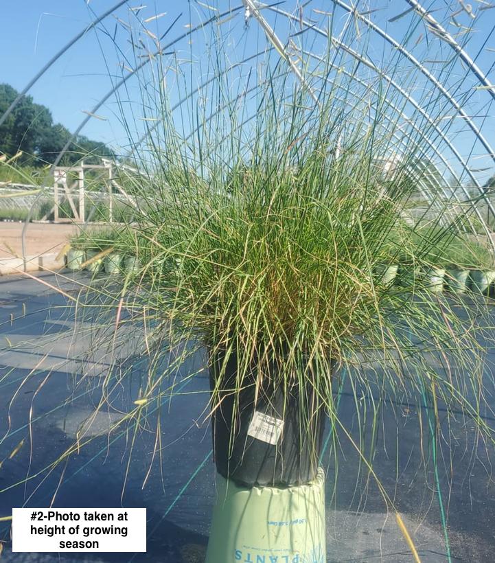 Easy to grow and quite attractive ornamental grass with flag-like flowers that bloom in July with yellow pollen that hangs down resembling eyelashes. The interesting flowers attract butterflies and other pollinators. Birds enjoy the seed that falls to the ground in the fall.