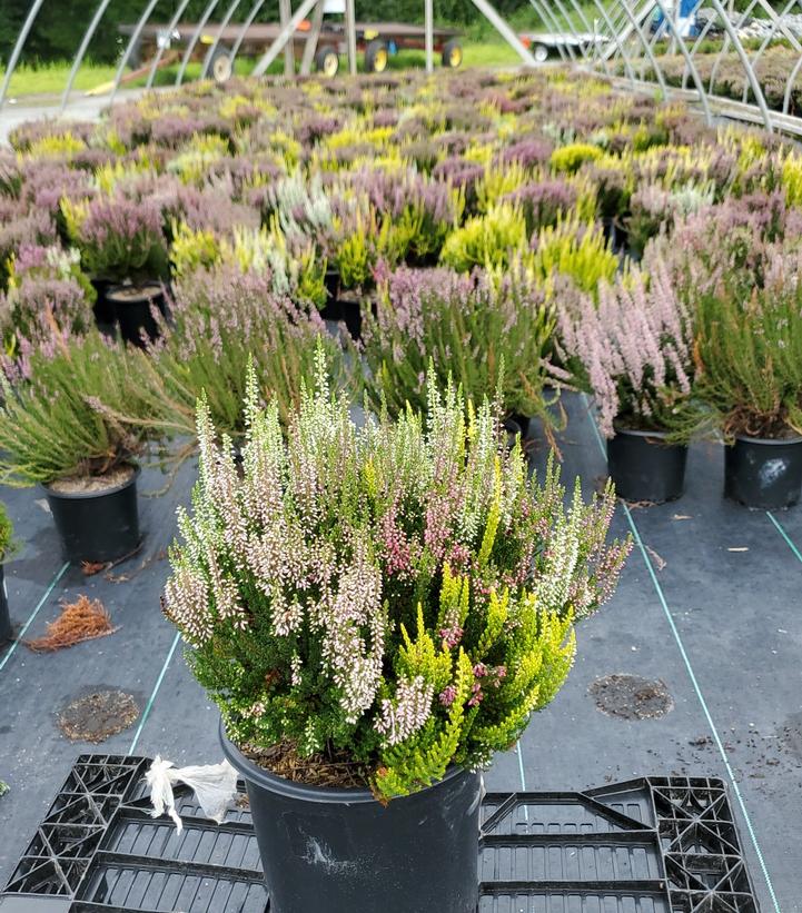 A very upright variety with dense buds of reds, purples, and whites. Great as a colorful groundcover, border planting, in a rock garden or container. This new Scotch Heather cultivar is one of the best for holding flowers longer into cold weather. Deer resistant.