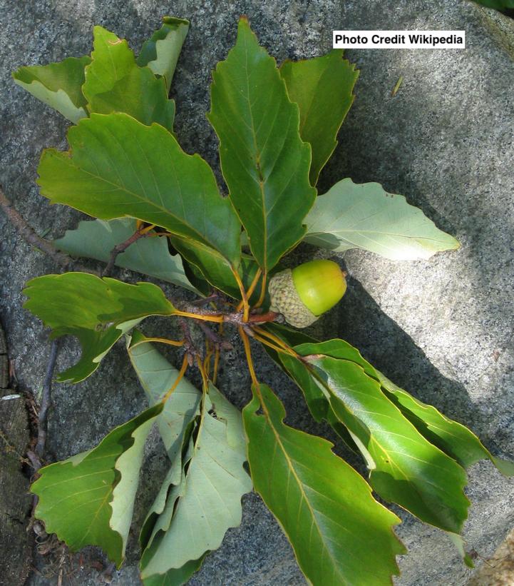 This chestnut oak has a tall, rounded crown made up of dark green, obovate, leathery leaves with gray-green undersides. Inconspicuous yellow-green flowers separate into male and female catkins in the spring. Acorns provide food source for wildlife.