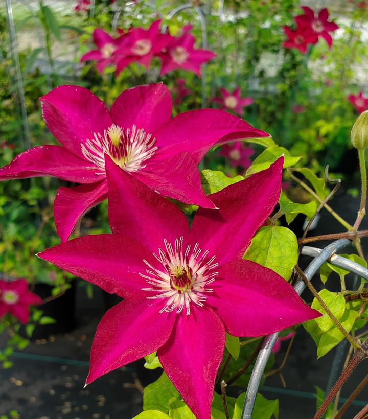 This compact perennial displays large and showy reddish-pink blooms with white tips supported by a deciduous vine. Encourage Clematis Tekla™ to climb a trellis or fence, allow to 'spill' over the edge of planters, or provide enough space to allow the vine to spread throughout other plants and shrubbery. This cold hardy, disease resistant perennial attracts pollinators and is an easy to grow addition to any garden!