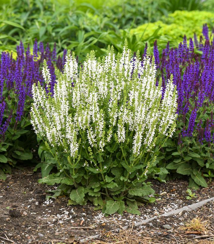 This Salvia nemorosa will impress you with the number of times it reblooms! Sheer back the spent flowers and enjoy again throughout the summer. Pure white flowers are held on a perfectly rounded, dense and beautiful habit. This shorter stature Salvia will tuck in nicely to all sorts of places in your perennial garden, planted en mass makes a perfect edger.
