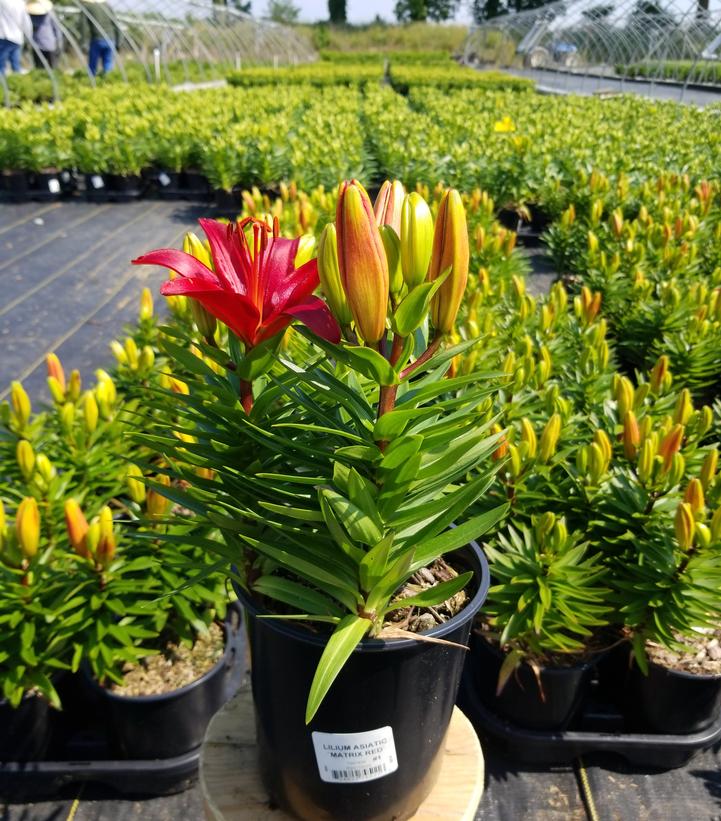Matrix Red is a stunning lily with firey red blooms. It is well suited for container planting. Produces large blooms on sturdy stems. The compact size makes it perfect for small gardens. This beauty will multiply year after year.
